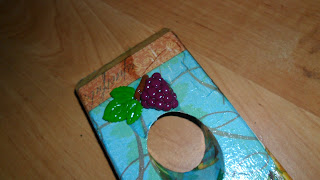 Para homem tenho sempre dificuldade, por isso já comecei, com dois suportes para garrafad, com guardanapo e pequenos cachos de uvas em Biscuit.